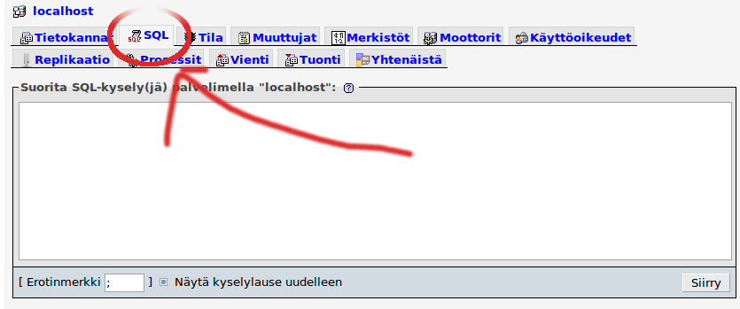 ohjeen mukaan niin mitä tossa SQL kohdassa täytyy tehdä?