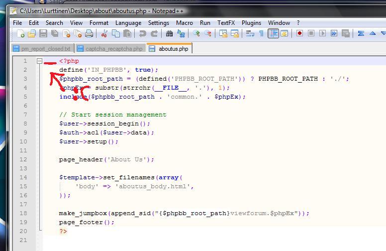 Konvertoin eli muunsin tiedoston muotoon utf-8(ei bom) ja sit save ja lataan tiedostot aboutus.php foorumin juureen ja aboutus_body.html prosilver/template kansioon, mut ei toimi. Herjaa virhettä