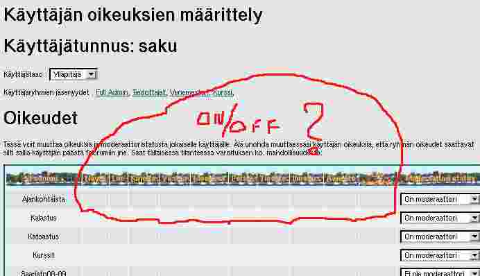 Eli laajennettu näyttö (myös suppeampi on viallinen). On valinta vain "on moderaattori/ei ole moderaattori".