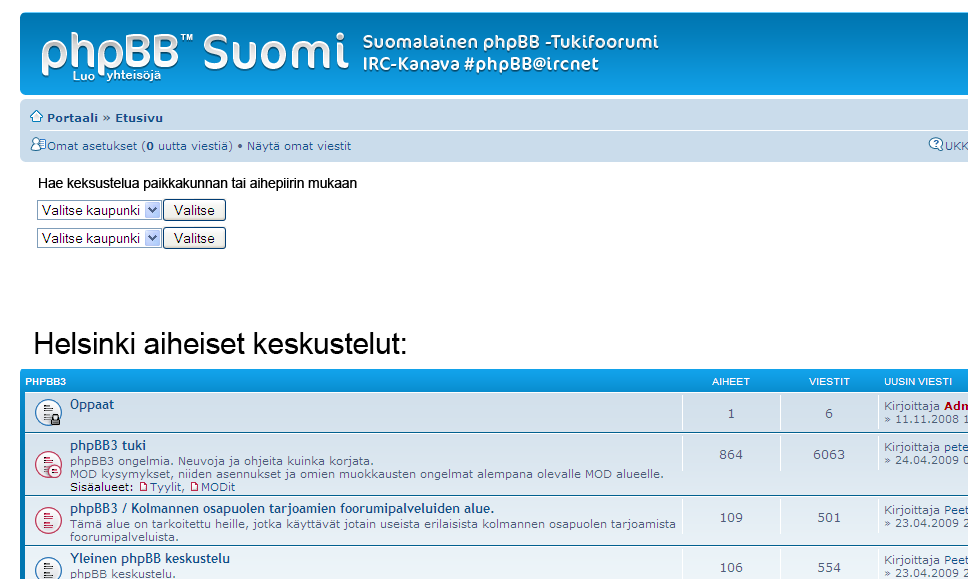 Onko PhpBB:n mahdollista rakentaa toimintoa, jossa jokaisen uuden topicin avauksessa kirjoittaja valitsee kaksi eri kategoriaa joihin kyseinen kirjoitus kuuluu? Esimerkiksi paikkakuntalista ja kirjoituksen aihepiiri vaikkapa moottoripyörät. Foorumin etusivulla olisi sitten hakutoiminto, josta keskustelu löytyisi vaikkapa dropdown valikosta Helsinki-aiheisista kirjoituksista tai toisesta dropdown valikosta Moottoripyörät-aihepiirin alta?