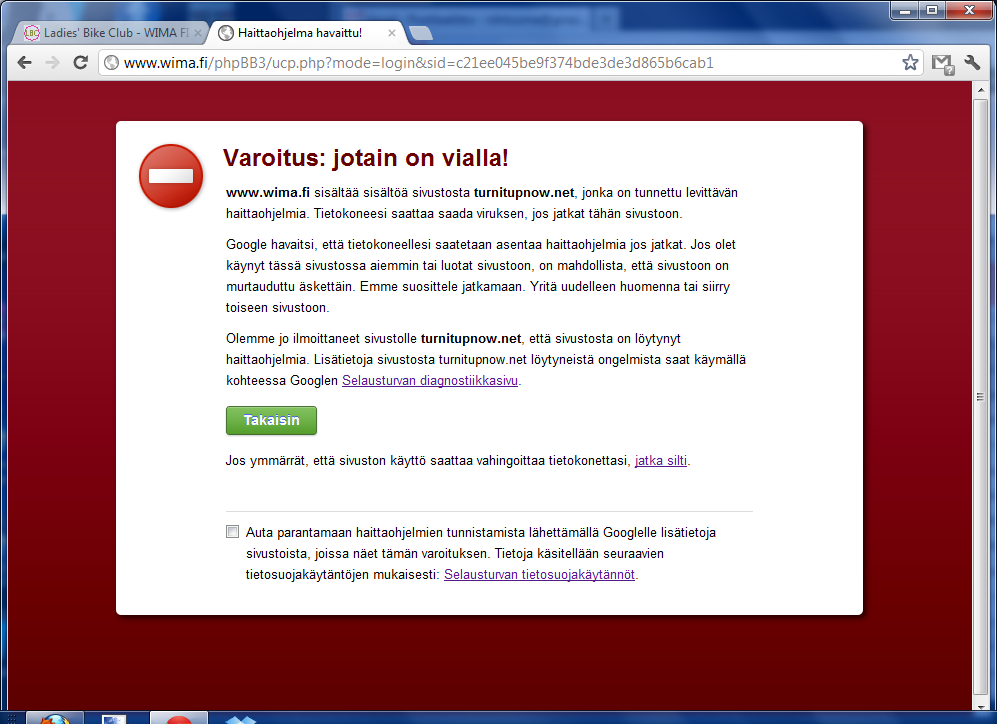 Tuliko tuo varoituis korjattua jo? En ainakaan täällä päässä selain/antiviirus innostunut riekkumaan, enkä löytänyt turnitista ladattavaa sisältöäkään.